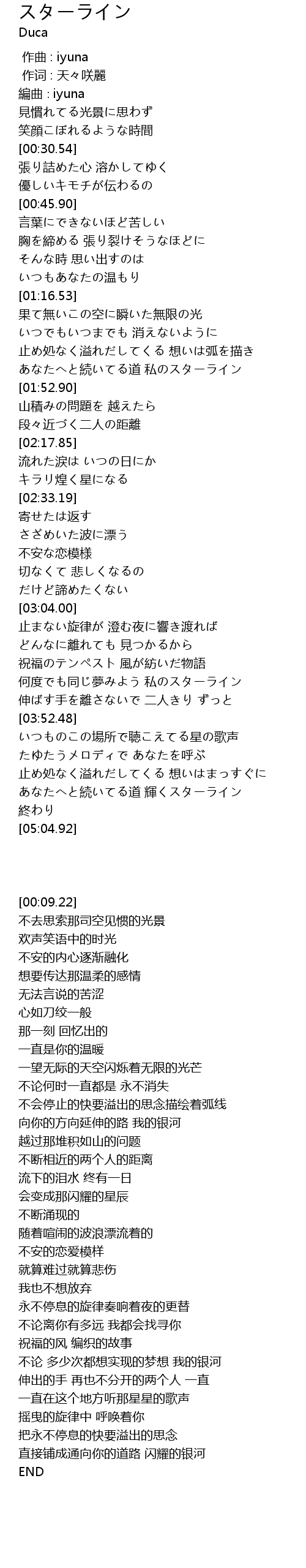 | [00:09.22] | 編曲∶iyuna |