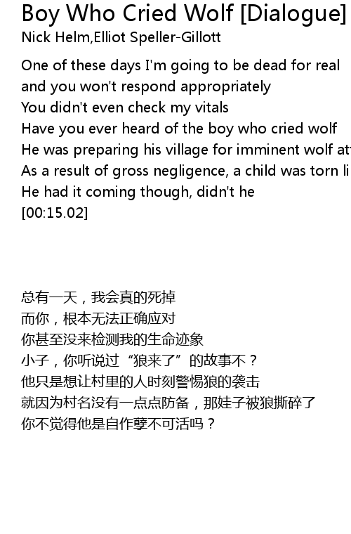 | Song | Boy Who Cried Wolf [Dialogue] |
