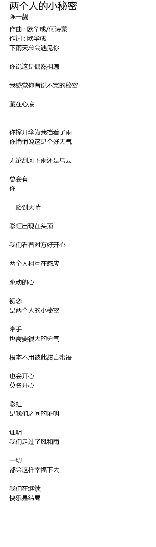 | 作曲 : 欧华成/何诗蒙 | |
