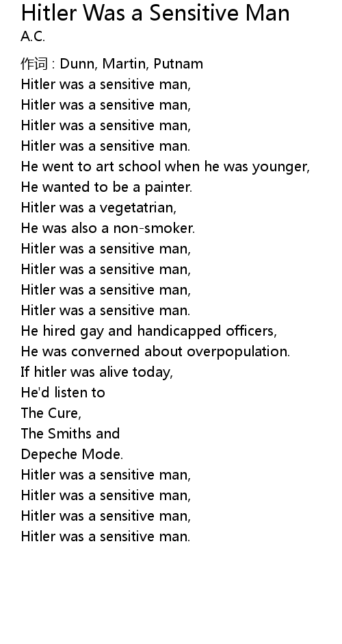 | Song | Hitler Was a Sensitive Man |