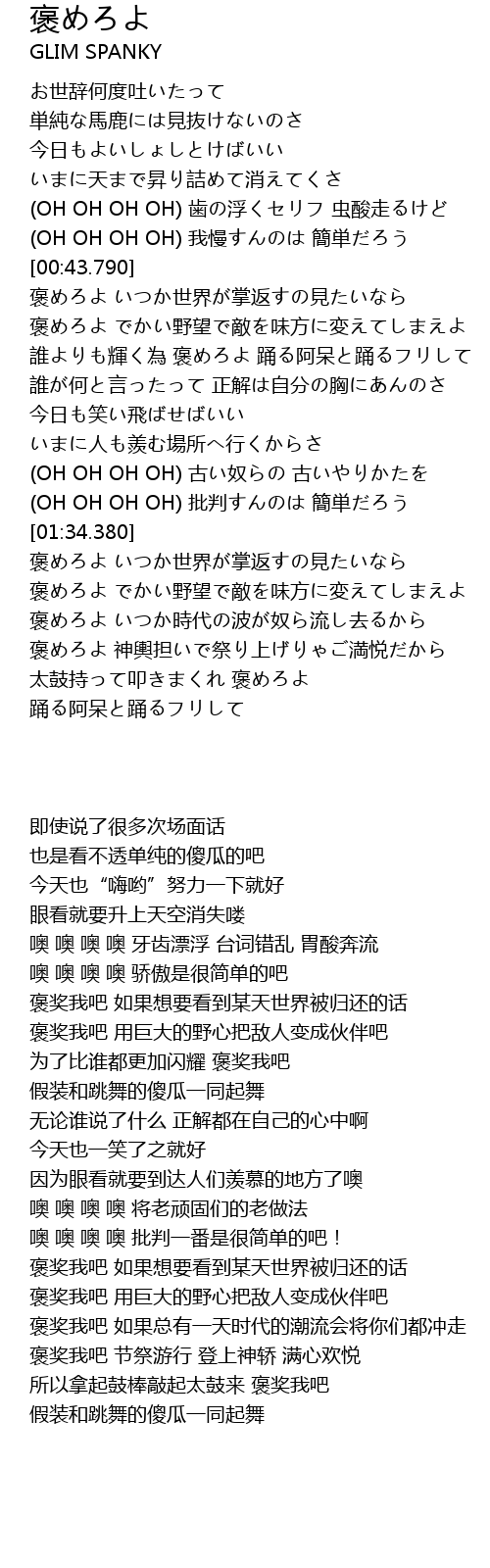 | [01:47.420] | 褒めろよ いつか時代の波が奴ら流し去るから |