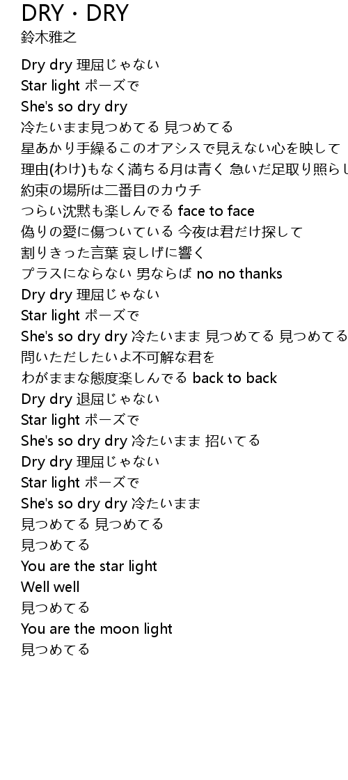 | She's so dry dry 冷たいまま 見つめてる 見つめてる | |