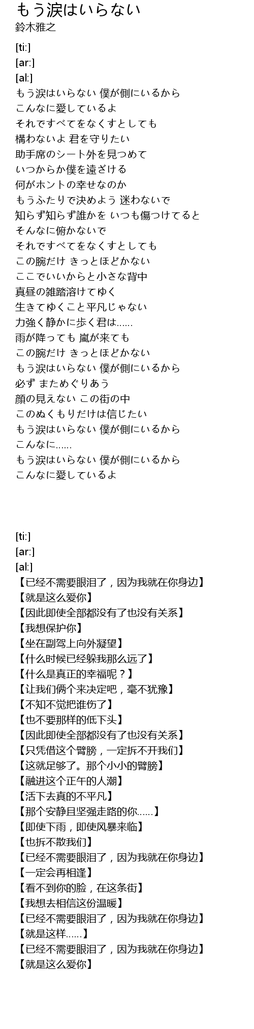 | [04:28.02] | もう涙はいらない 僕が側にいるから |