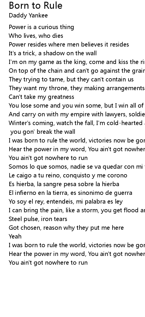 Yo soy el rey, entendeis, mi palabra es ley |