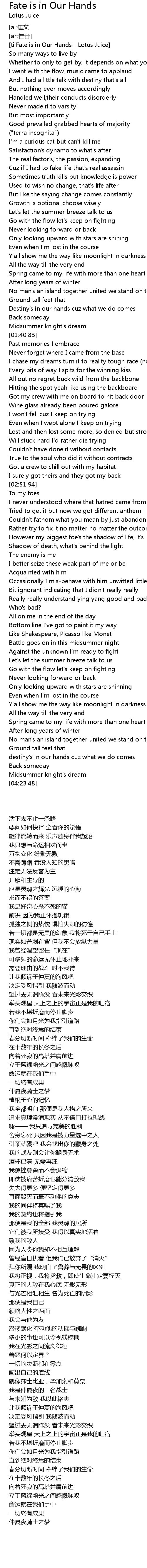 | [ti:Fate is in Our Hands - Lotus Juice] | |