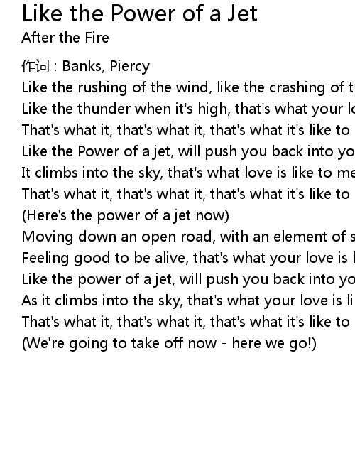 | Song | Like the Power of a Jet |