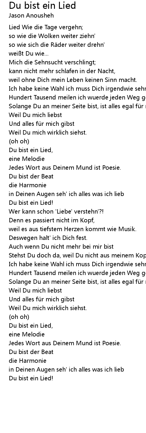 | Du bist ein Lied, | |