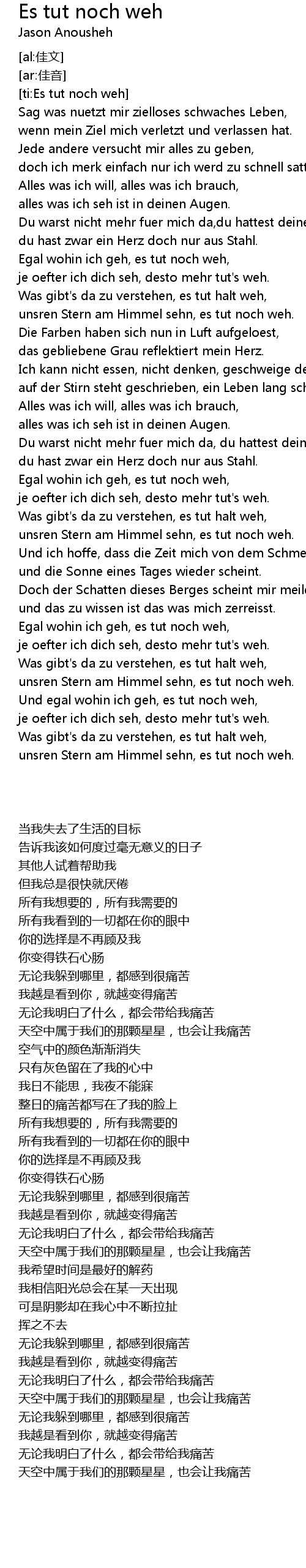 | [02:39.10] | Und egal wohin ich geh, es tut noch weh, |
