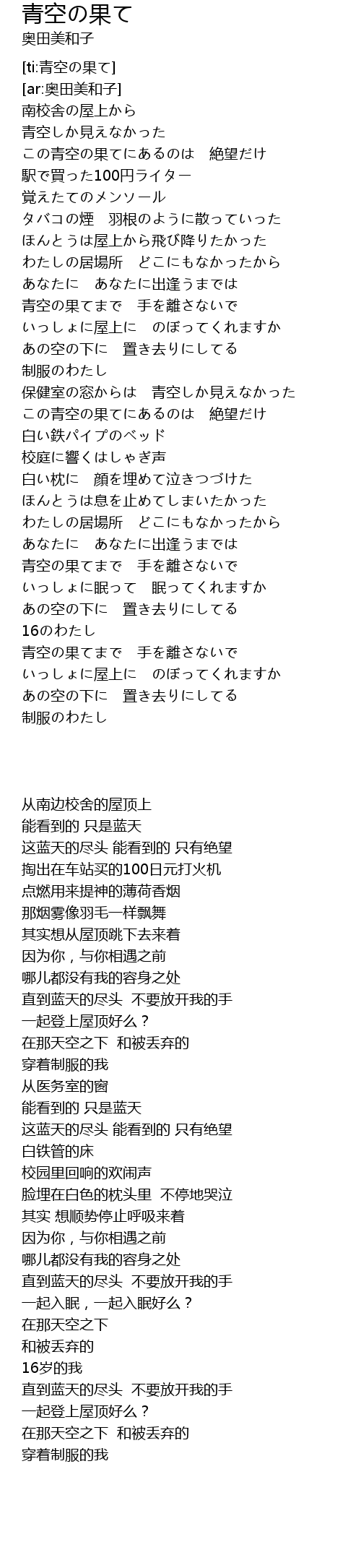 | [03:38.671] | 青空の果てまで 手を離さないで |