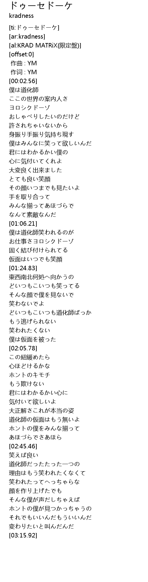 | [02:01.61] | 僕は仮面を被った |
