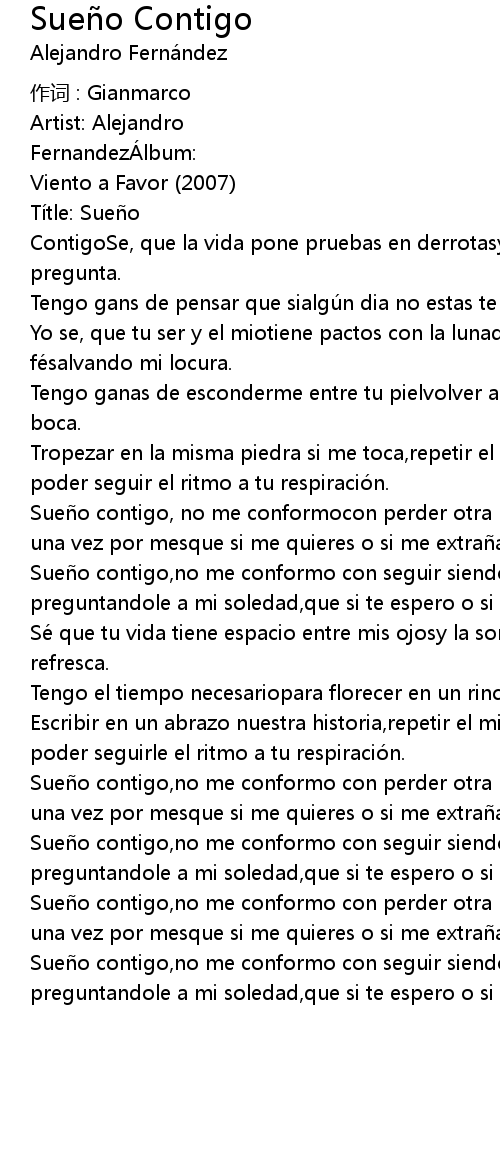 | Sue o contigo, no me conformo con perder otra ma anaamando a solas perguntando una vez por mesque si me quieres o si me extra as. | |