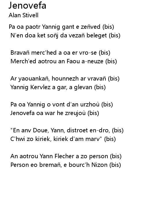 | "En anv Doue, Yann, distroet en-dro, (bis) | |