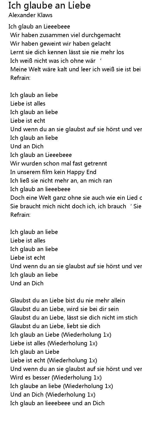 | Ich glaube an liebe (Wiederholung 1x) | |