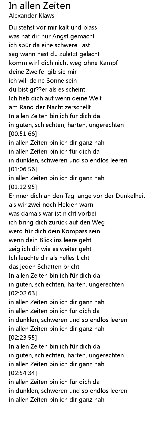 | [02:25.28] | In allen Zeiten bin ich fü r dich da |