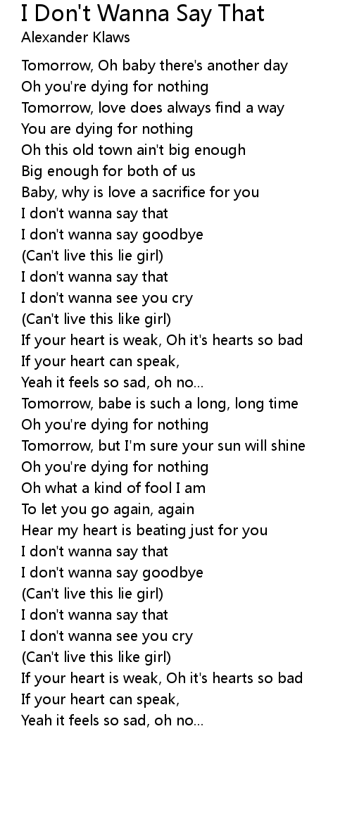 I don't wanna say that |