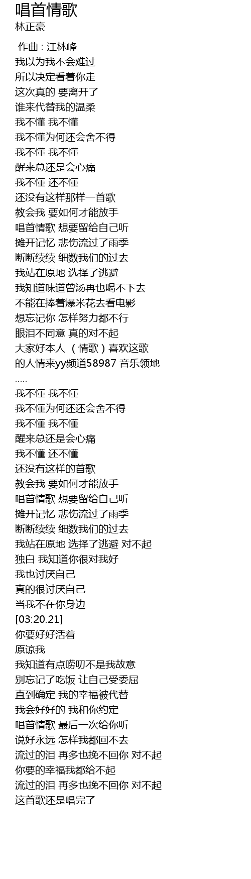 | [03:56.51] | 唱首情歌 最后一次给你听 |