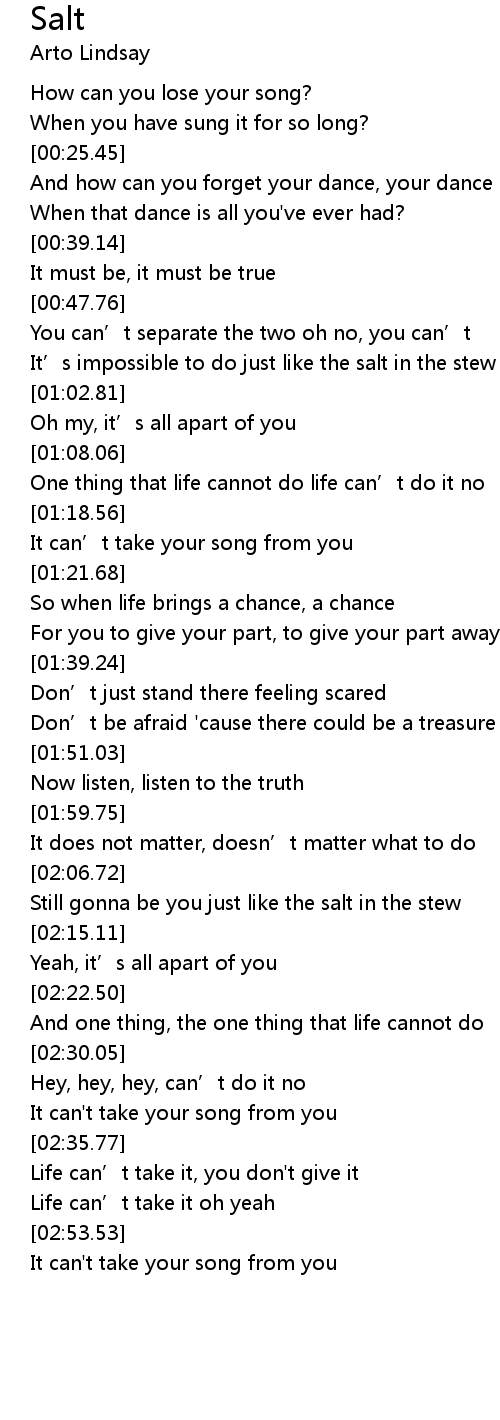 | [00:55.00] | It' s impossible to do just like the salt in the stew |