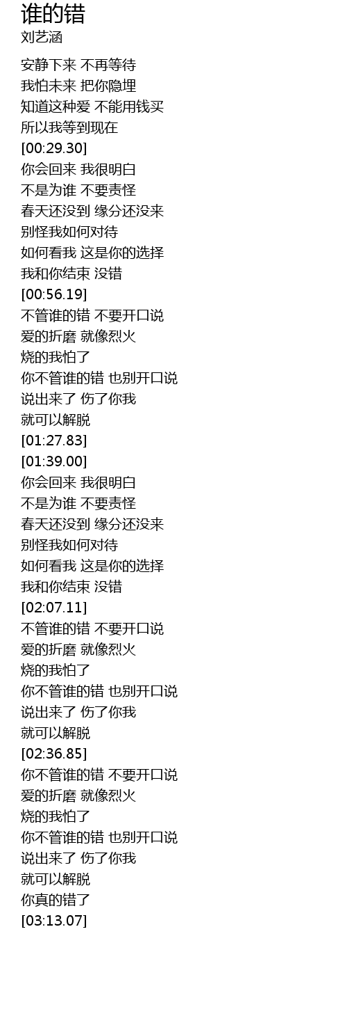 | [02:51.72] | 你不管谁的错 也别开口说 |