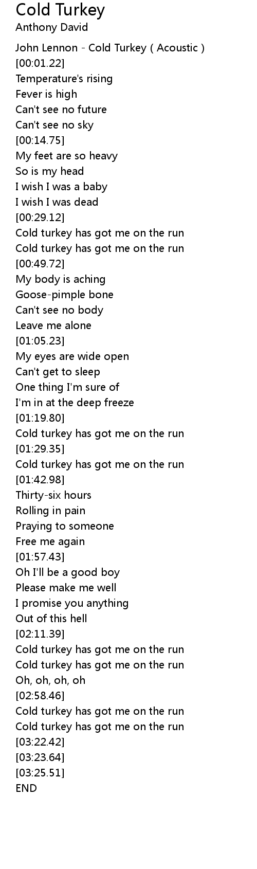 | [00:00.00] | John Lennon - Cold Turkey(Acoustic) |
