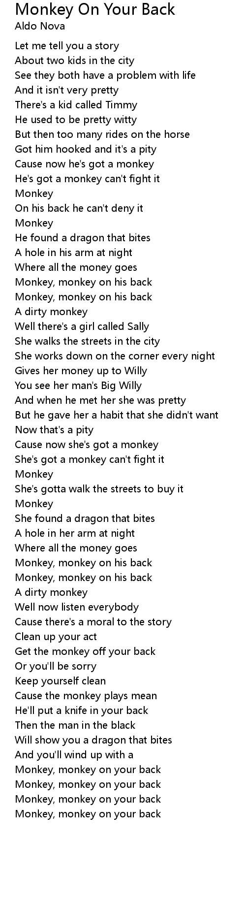 Monkey, monkey on your back |