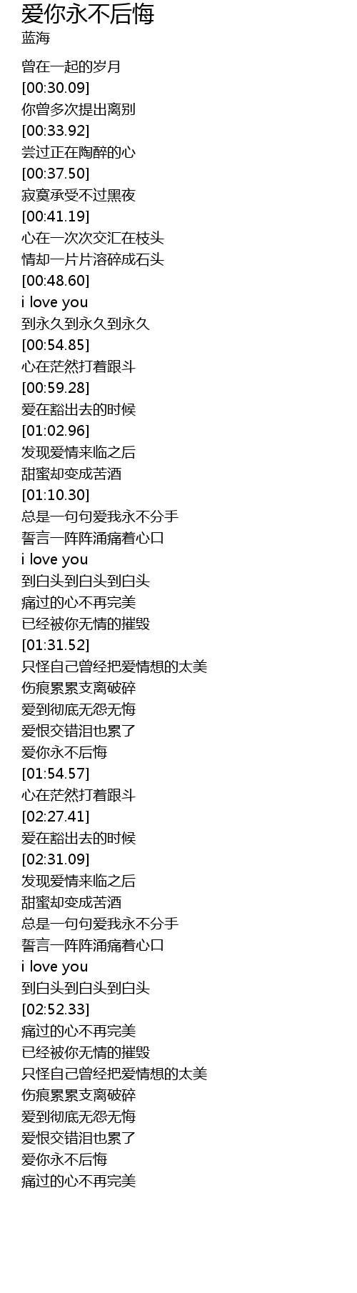 | [01:48.38] | ài nǐ yǒng bù hòu huǐ |