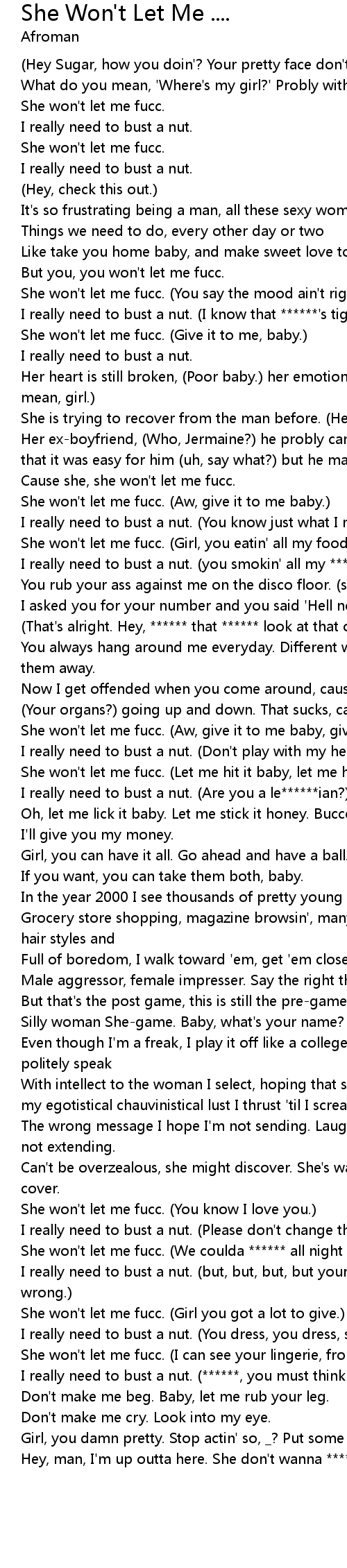 She won't let me fucc. (Let me hit it baby, let me hit it baby.)