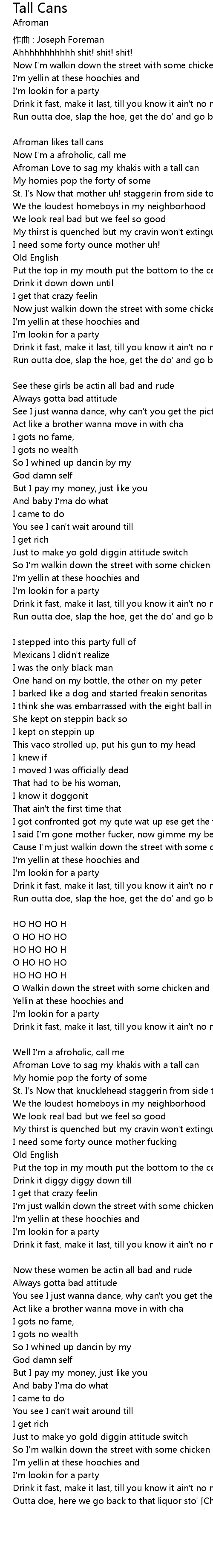 | I need some forty ounce mother fucking | |