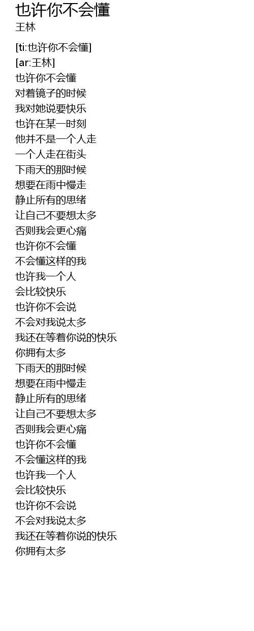 | [00:01.915] | yě xǔ nǐ bú huì dǒng |