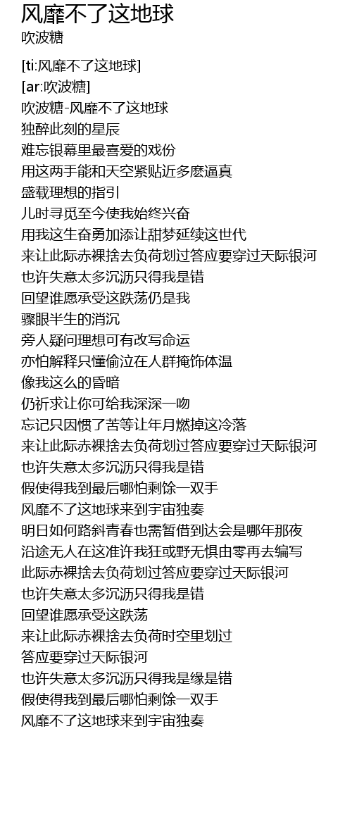 | [04:13.899] | 风靡不了这地球来到宇宙独奏 |