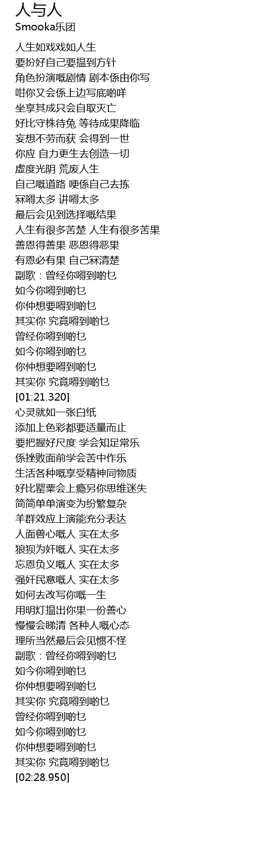 | [00:56.450] | 有恩必有果 自己冧清楚 |