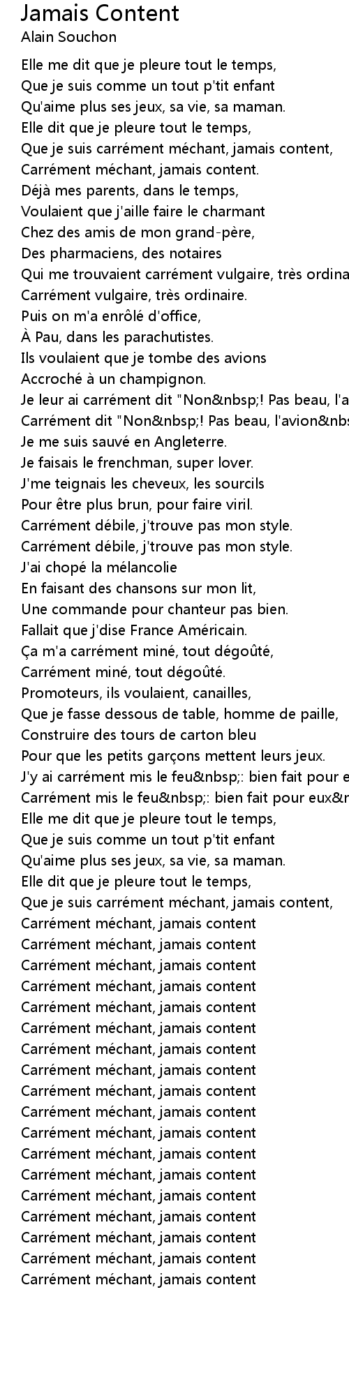 | Carre ment me chant, jamais content |