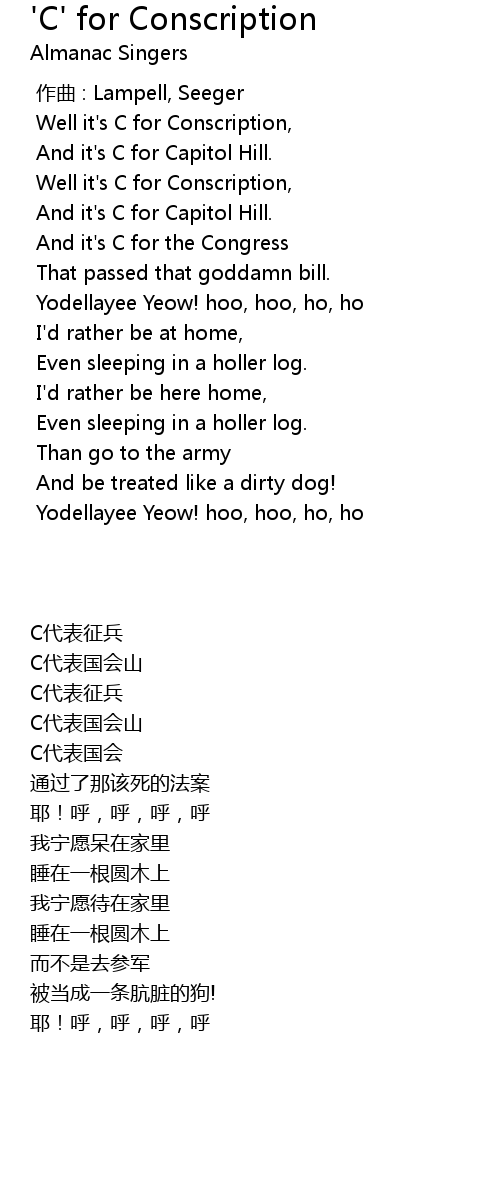 | [00:19.483] | Well it' s C for Conscription, |