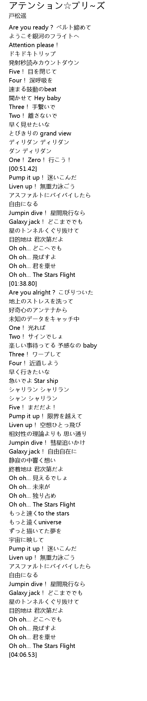 | [01:07.30] | Jumpin dive! 星間飛行なら |