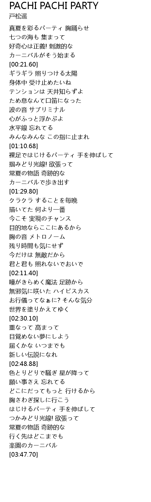 | [00:03.00] | 真夏を彩るパーティ 胸踊らせ |