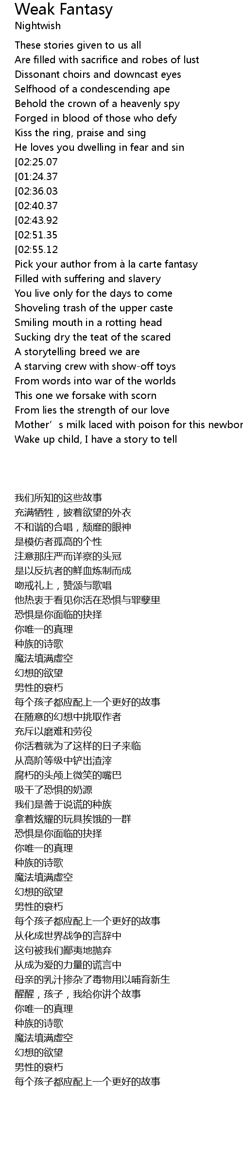 | [04:43.83][02:40.37][01:35.70] | Witchcraft filling your void |