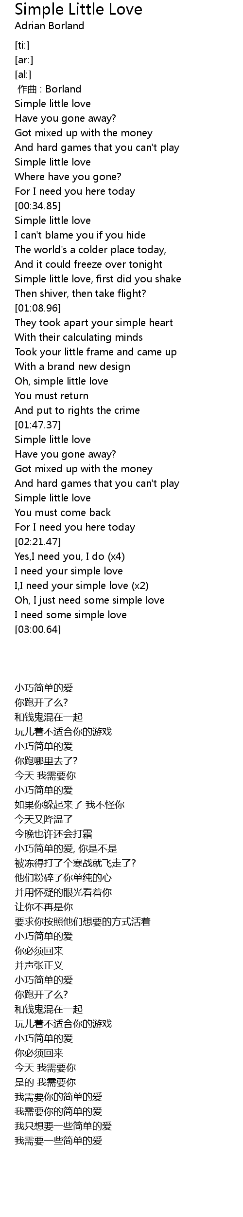 | [02:39.78] | I need your simple love |