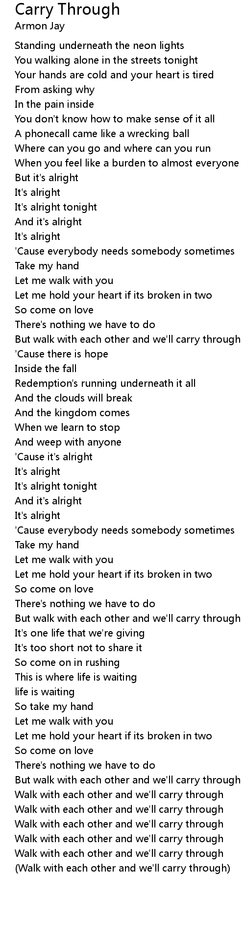 But walk with each other and we'll carry through |