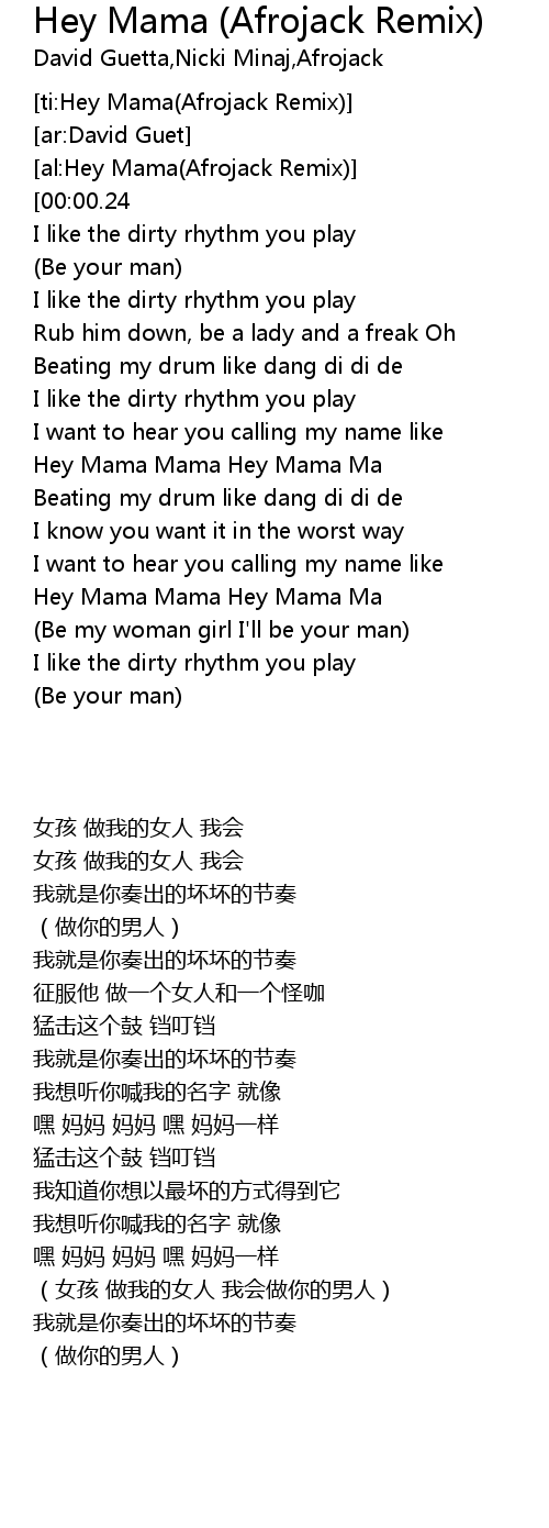 [01:42.83] Hey Mama Mama Hey Mama Ma