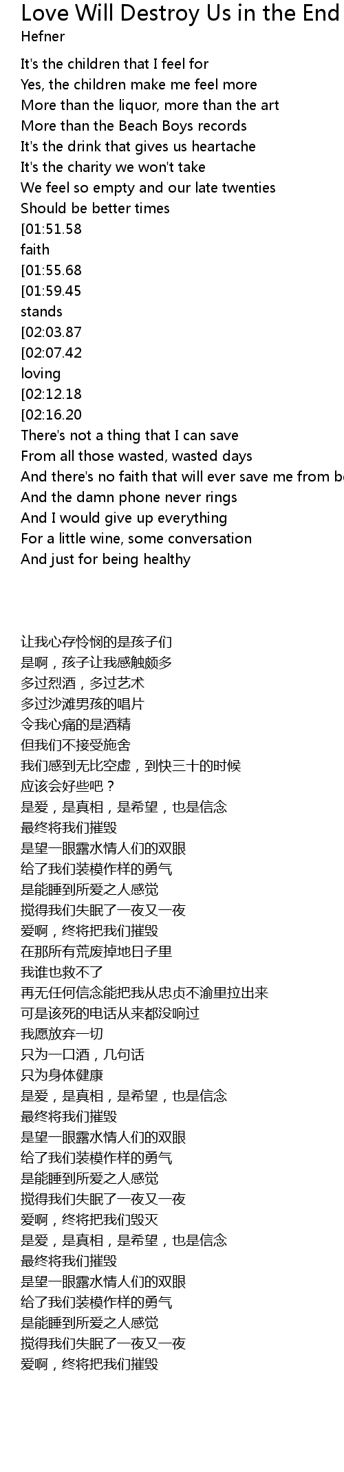 [01:04.57][02:16.20][03:41.49] And love will destroy us in the end