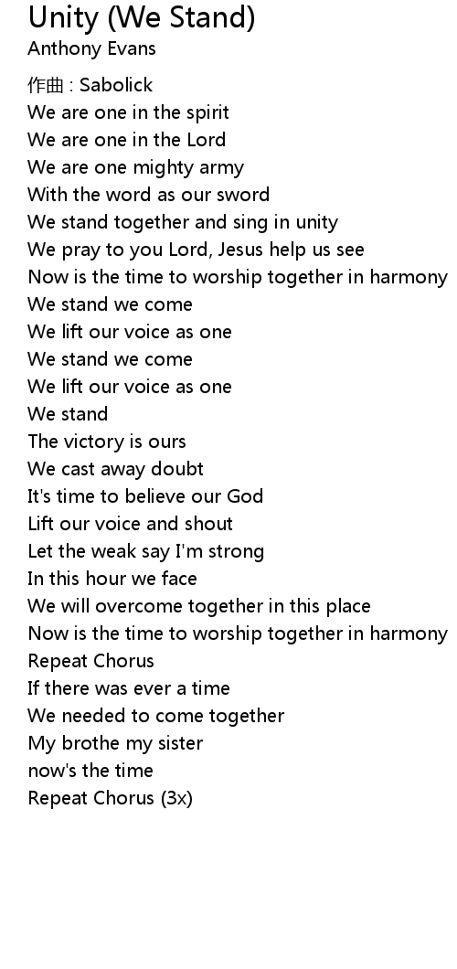 | We stand together and sing in unity | |