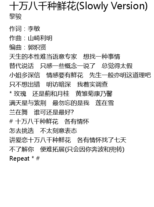 | jiǎng ài liàn shí wàn bā qiān zhǒng xiān huā gè yǒu qíng huái zhǎo le qī tiān | |
