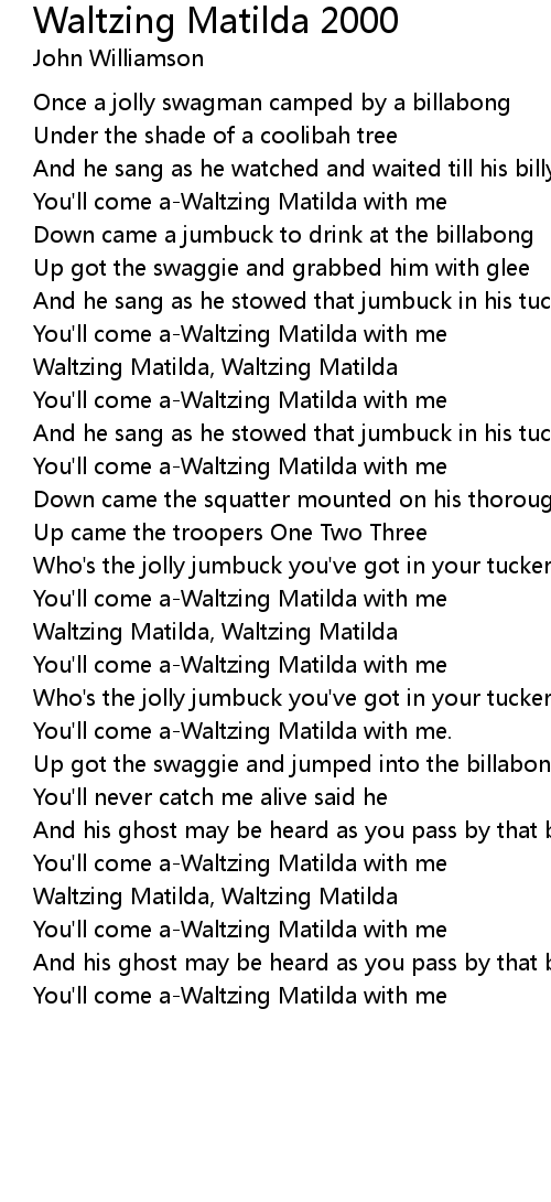 Who's the jolly jumbuck you've got in your tucker-bag? |