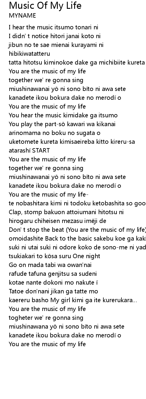 | Don' t stop the beat You are the music of my life | |
