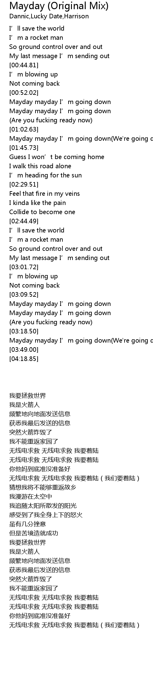 | [03:44.20] | Mayday mayday I’m going down(We're going down) |
