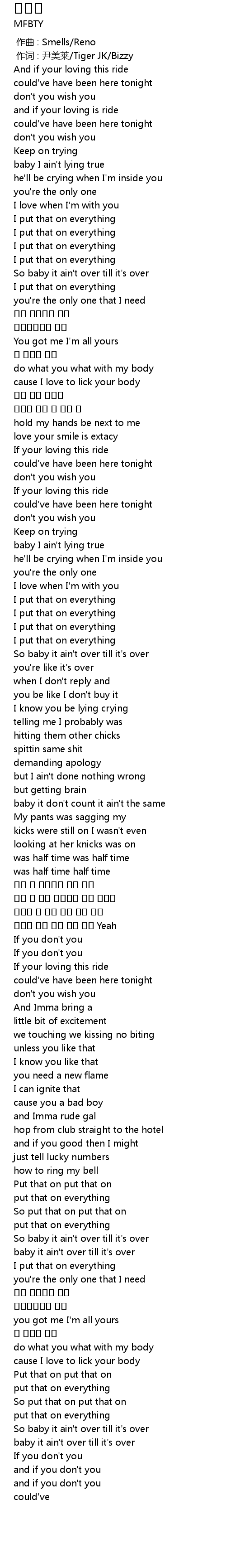 | [00:00.06] | 作词 : 尹美莱/Tiger JK/Bizzy |