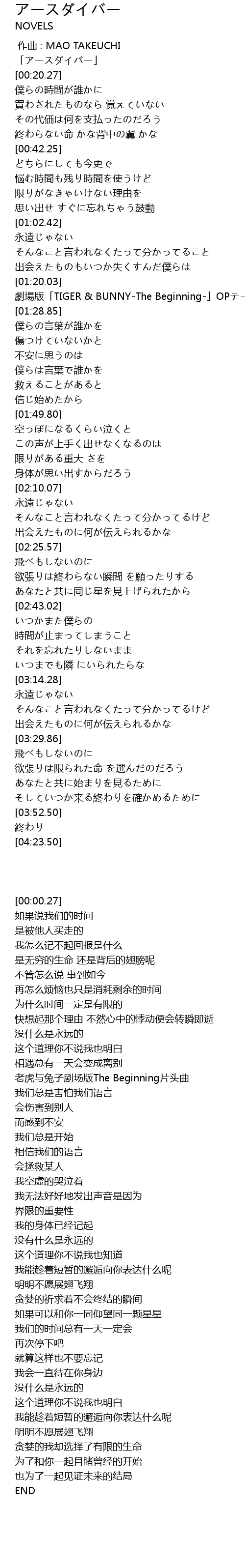 | [01:21.85] | 劇場版「TIGER & BUNNY-The Beginning-」OPテーマ |