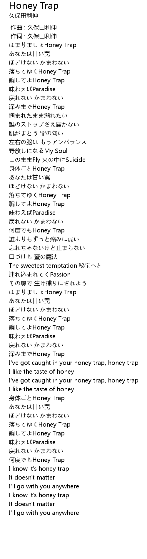| [02:38.83] | 落ちてゆくHoney Trap |