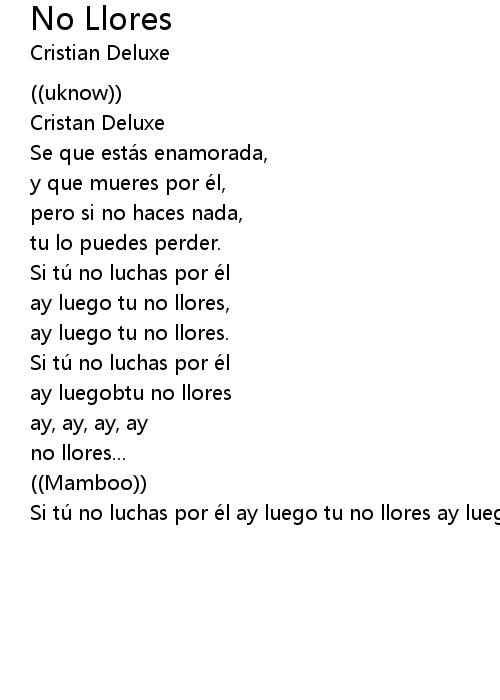 | Si tú no luchas por é l ay luego tu no llores ay luego tu no llores |