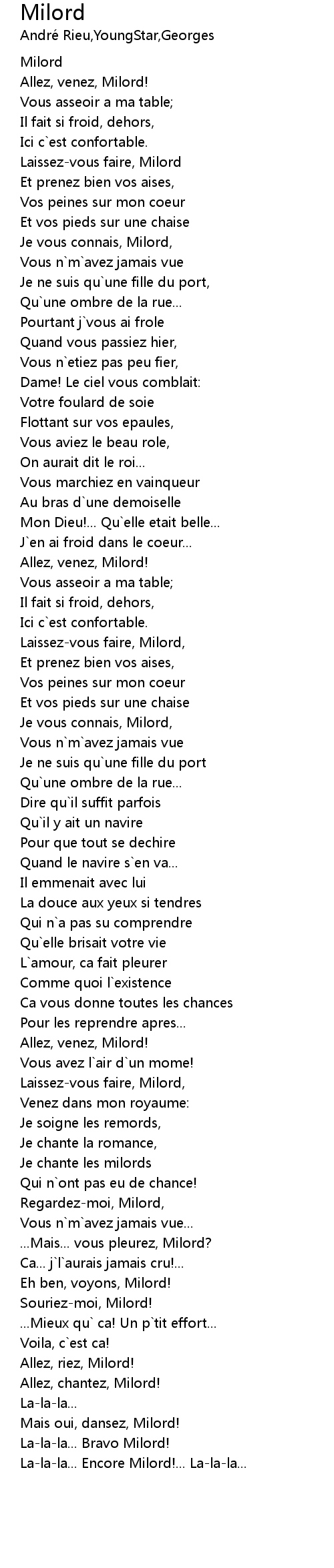 Allez, chantez, Milord! |
