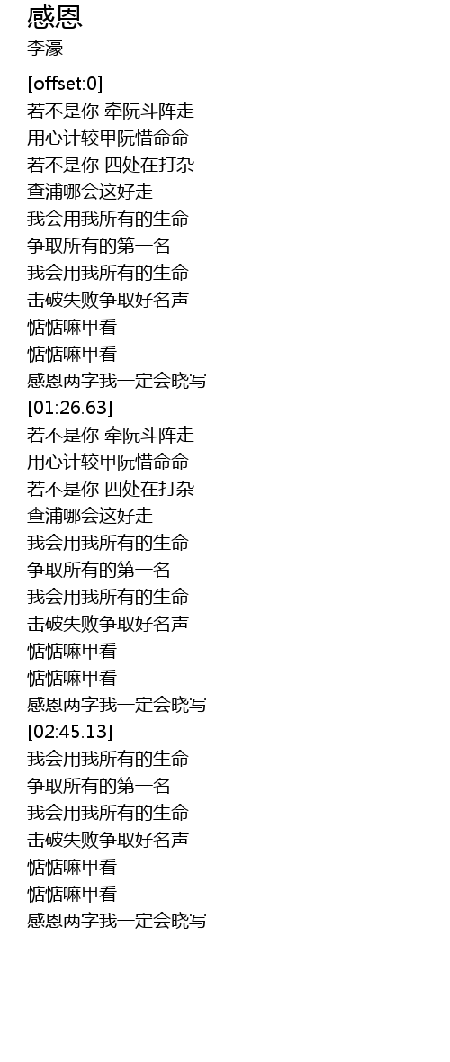 | [03:39.16] | 感恩两字我一定会晓写 |